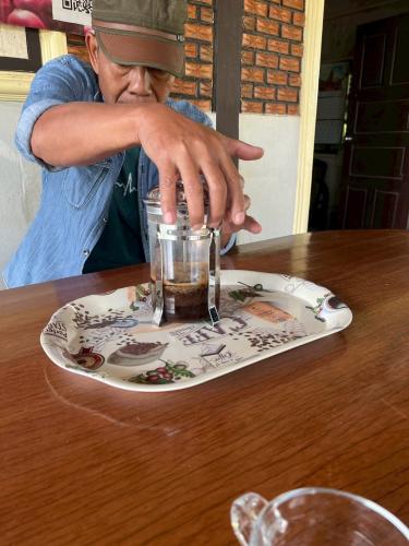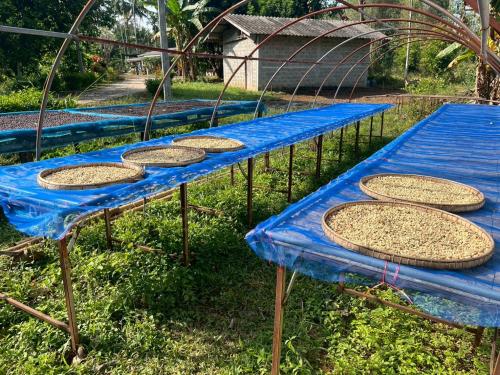 วันนี้ (วันที่ 27 พฤศจิกายน 2568) ว่าที่ร้อยตรีชาคริต ปิติฤทธิ์ พัฒนาการอำเภอทองผาภูมิ พร้อมด้วยเจ้าหน้าที่พัฒนาชุมชนอำเภอทองผาภูมิ ลงพื้นที่ติดตามและสนับสนุนการดำเนินงาน ผู้ผลิต ผู้ประกอบการ OTOP ประเภทเครื่องดื่ม "กาแฟลุงโก๊ะ"