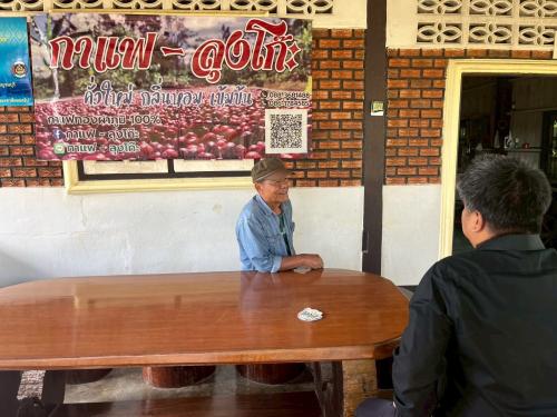 ผู้ผลิต ผู้ประกอบการ OTOP "ร้านกาแฟลุงโก๊ะ" จำหน่ายผลิตภัณฑ์เมล็ดกาแฟและผลิตภัณฑ์จากกาแฟ ณ หมู่ที่ 3 ตำบลชะแล อำเภอทองผาภูมิ จังหวัดกาญจนบุรี