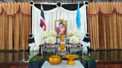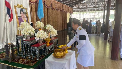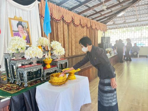 สมเด็จพระนางเจ้าสิริกิติ์ พระบรมราชินีนาถ พระบรมราชชนนีพันปีหลวง กล่าวถวายสดุดี น้อมรำลึกในพระมหากรุณาธิคุณ และร่วมยืนสงบนิ่งแสดงความอาลัยเป็นเวลา 1 นาที จากนั้น นายอำเภอทองผาภูมิ เป็นผู้แทนแลกเงินพระราชทานขวัญถุงกองทุนแม่ของแผ่นดิน