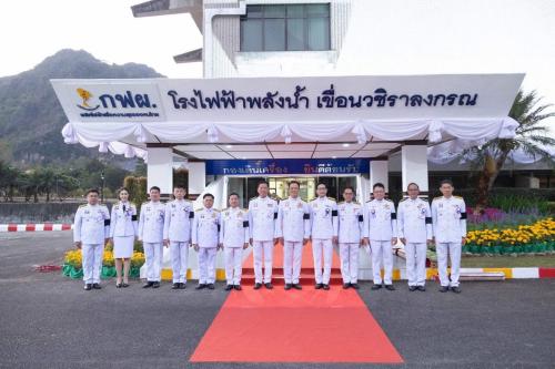ทั้งนี้ มี พลเอก ไพบูลย์ คุ้มฉายา และ พลเอก เฉลิมชัย สิทธิสาท องคมนตรี นายอนุทิน ชาญวีรกูล นายกรัฐมนตรี และภริยา พร้อมด้วย นางสาววริษฐา สงวนเสริมศรี ผู้ว่าราชการจังหวัดกาญจนบุรี รองผู้ว่าราชการจังหวัดกาญจนบุรี ข้าราชการระดับสูงในจังหวัดกาญจนบุรี ข้าราชการระดับสูงของการไฟฟ้าฝ่ายผลิตแห่งประเทศไทย และพสกนิกรชาวจังหวัดกาญจนบุรี ร่วมเฝ้าฯ รับเสด็จฯ