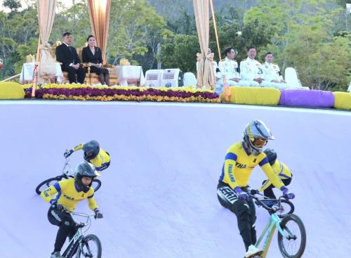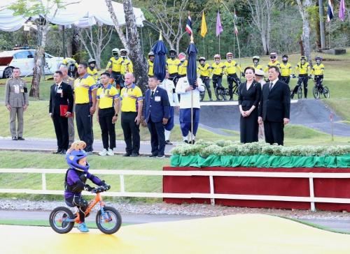 ในการนี้ พระบาทสมเด็จพระเจ้าอยู่หัว และสมเด็จพระนางเจ้าฯ พระบรมราชินี เสด็จออกจากพลับพลาพิธีไปยังแท่นพิธีเปิดแพรคลุมป้ายสวนสุขภาพสราญจิต เฉลิมพระเกียรติ จากนั้นเสด็จไปทรงปลูก ต้นรวงผึ้ง และทอดพระเนตรการสาธิตการปั่นจักรยานขาไถ ณ สนามจักรยานขาไถและสนามจักรยาน Pump Track ก่อนเสด็จฯ ไปทอดพระเนตรนิทรรศการ “72 พรรษา สายธารแห่งความรักและภักดี” และเยี่ยมชมโรงไฟฟ้าพลังน้ำเขื่อนวชิราลงกรณ