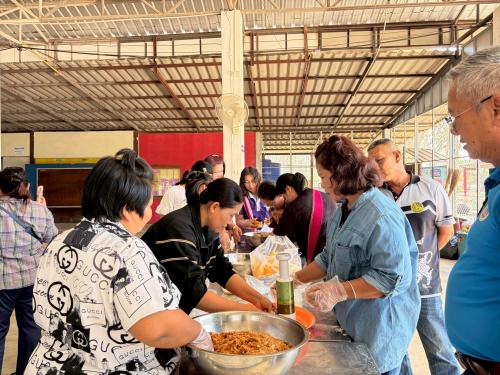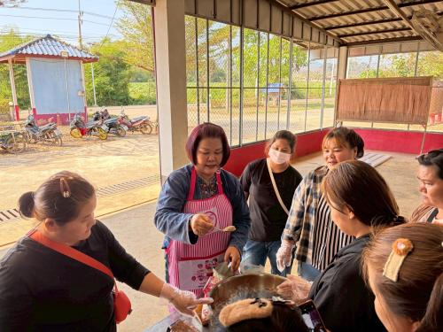 นอกจากนี้ กิจกรรมยังเน้นการเรียนรู้เชิงปฏิบัติ โดยมีการถ่ายทอดองค์ความรู้ด้านอาชีพเสริม “อาชีพไส้กรอกหมูพริกลาบกะเหรี่ยง” โดยนางกัลยา ชานนท์ตรี ปราชญ์ชุมชน ซึ่งสามารถนำไปใช้สร้างรายได้เสริมให้แก่ครัวเรือนได้จริง โดยมีครัวเรือนเป้าหมายในหมู่บ้านกลุ่มออมทรัพย์เพื่อการผลิตบ้านกุยแหย่ หมู่ที่ 2 ตำบลลิ่นถิ่น เข้าร่วมกิจกรรม จำนวน 15 ราย