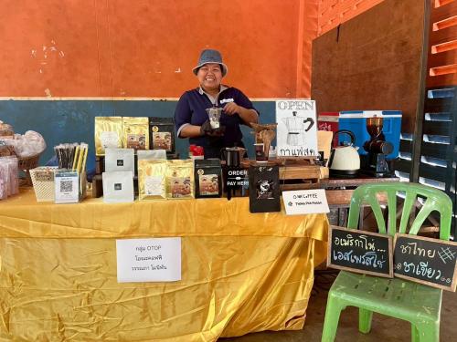 ทั้งนี้ เครือข่ายผู้ผลิตและผู้ประกอบการ OTOP ในพื้นที่อำเภอทองผาภูมิ ได้ร่วมเปิดร้านค้าจำหน่ายและจัดแสดงสินค้าชุมชนภายในบริเวณหอประชุม เพื่อประชาสัมพันธ์ผลิตภัณฑ์ชุมชน ส่งเสริมรายได้ให้แก่ผู้ประกอบการ และสนับสนุนเศรษฐกิจฐานรากในระดับพื้นที่ จำนวน 6 ร้าน ได้แก่