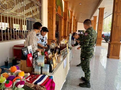 ทั้งนี้ เครือข่ายผู้ผลิตและผู้ประกอบการ OTOP ในพื้นที่อำเภอทองผาภูมิ ได้ร่วมเปิดร้านค้าจำหน่ายและจัดแสดงสินค้าชุมชนภายในบริเวณศาลาปฏิบัติธรรมฯ เพื่อประชาสัมพันธ์ผลิตภัณฑ์ชุมชน ส่งเสริมรายได้ให้แก่ผู้ประกอบการ และสนับสนุนเศรษฐกิจฐานรากในระดับพื้นที่ จำนวน 5 ร้าน ได้แก่
