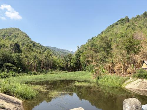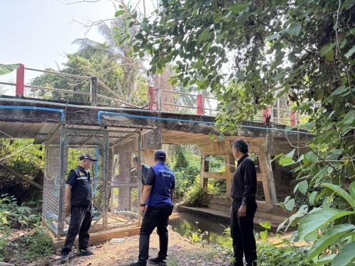 วันนี้ (27 เมษายน 2569) นายอนุสรณ์ สง่าแสง นายอำเภอทองผาภูมิ พร้อมด้วย นายอนันต์ พรรณา นักวิชาการพัฒนาชุมชนชำนาญการพิเศษ รักษาราชการแทนพัฒนาการอำเภอทองผาภูมิ นายสมพร เขม้นเขตการ ผู้ใหญ่บ้านบ้านเสาหงษ์ และผู้ช่วยผู้ใหญ่บ้าน ลงพื้นที่ตรวจฝายชะลอน้ำบ้านองธิ เพื่อติดตามสภาพการใช้งานและประสิทธิภาพของฝายในการกักเก็บน้ำ รวมถึงศึกษาระบบนิเวศชุมชนที่เกี่ยวข้อง